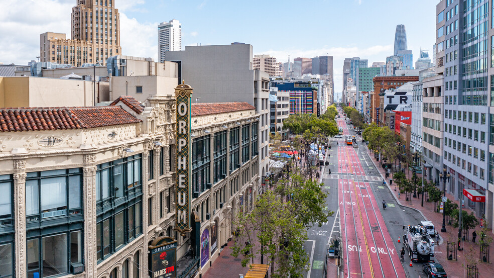 Property Overview The Orpheum Theatre, originally the Pantages Theatre, is located at 1182 Market at Hyde, Grove, and 8th Streets in the Civic Center district of San Francisco, California. The theatre first opened in 1926 as one of the many designed by architect B. Marcus Priteca for theater-circuit owner Alexander Pantages. The interior features a vaulted ceiling, while the façade is an original San Francisco Spanish Gothic Revival. The building is also home to a premiere boutique office suite community. The new owners are curating a welcoming, secure and distinguished professional atmosphere for their tenants. Property Manager on Site